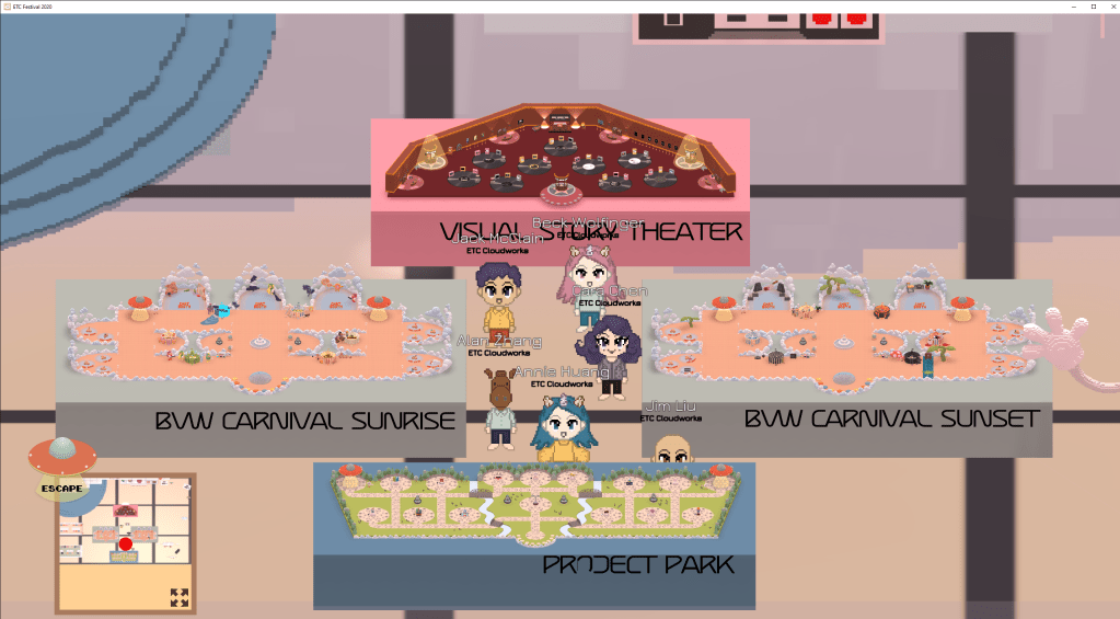 CloudWorks was a virtual platform designed as an MMO-style experience to host student festivals live, supporting 600+ concurrent users, providing an ideal solution during COVID lockdowns.