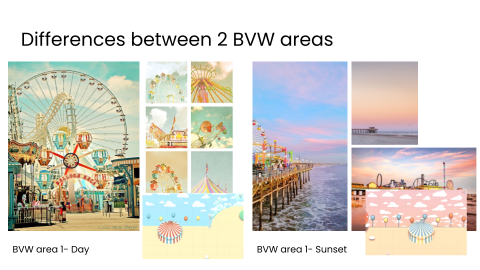Here is an example! I used the mockup on the left to communicate our tone and requirements to the artists and sound designers, enabling them to work on the environment simultaneously and create a cohesive and immersive guest experience.