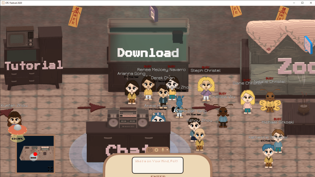 In this offline version, everything is kept as is except for the Zoom integration and content download links. It allows you to design your own avatar, explore the environment, and watch videos of students’ work. *It is for Windows only.