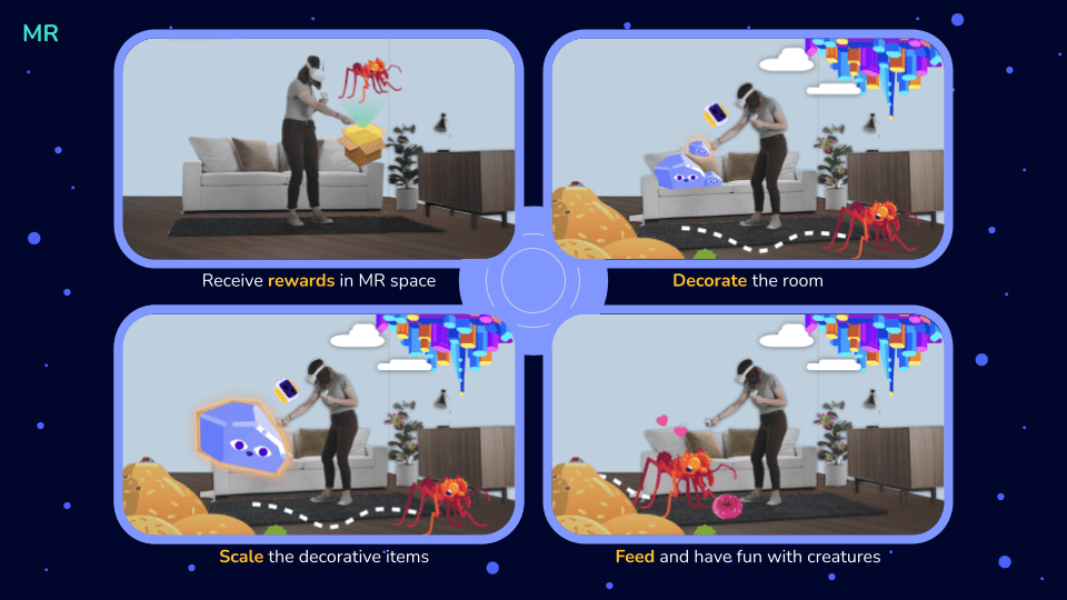 As players progress through the core game, their friendly AI companion S.T.E.V.E. will send them fun items (and a couple creatures!) related to their adventure. In the mixed reality experience, players can use those items to decorate their real-world space, scaling them up and down to fit their vision.