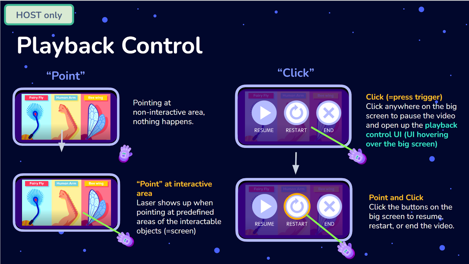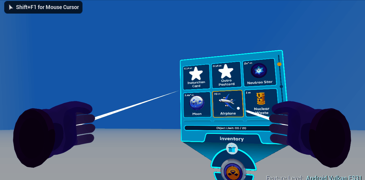 - Collaborated with the UI artist to design and implement the tablet interface, the primary control tool used across both the MR space and the VR theater to drive a wide range of interactive features.