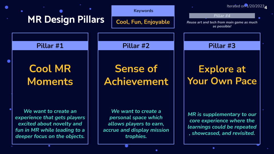 The design pillars I established with the team and stakeholders.